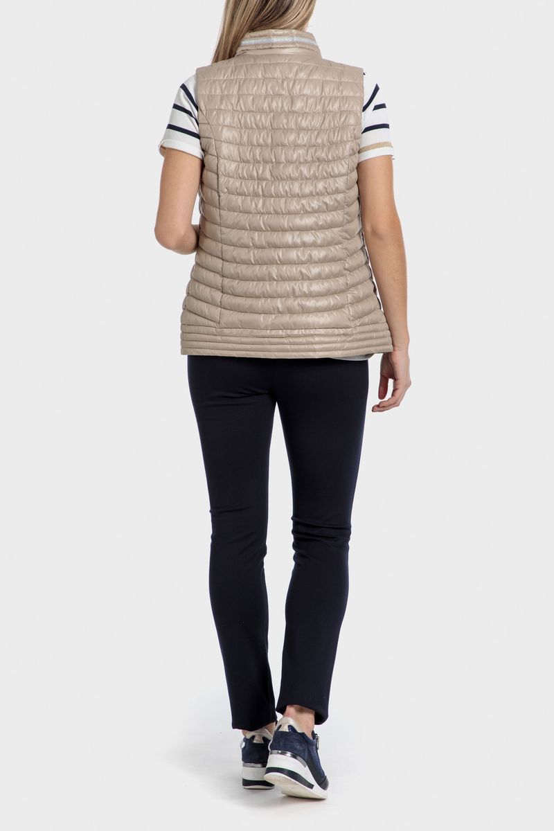 Chaqueta sin manga beige, acolchado, dos bolsillos laterales de cremallera, cuello alzado, cierre mediante cremallera frontal. 100% POLIESTER